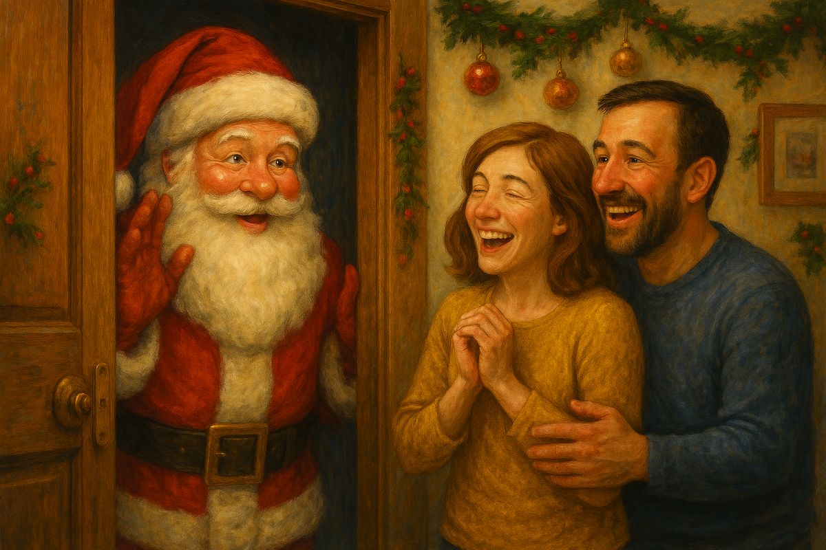 — Нет ещё. Наверное, много заказов. Именно в этот момент из-за угла соседней девятиэтажки показалась фигура. Неслась по сугробам, подбирая полы шубы, бренча посохом о замёрзший асфальт. Дед Мороз. Вернее, Сергей Семёныч, пенсионер из соседнего дома, на подработке. «Торопится, это хорошо — подумал Андрей Петрович. — Видимо график действительно плотный». Долгожданный звонок в дверь наконец-то прозвучал. Андрей Петрович распахнул дверь, впуская вихрь морозного воздуха, дешёвого акрилового меха и усталой доброты. — С Новым годом, хозяева! — прогремел Сергей Семёныч, но глаза его, умные и усталы