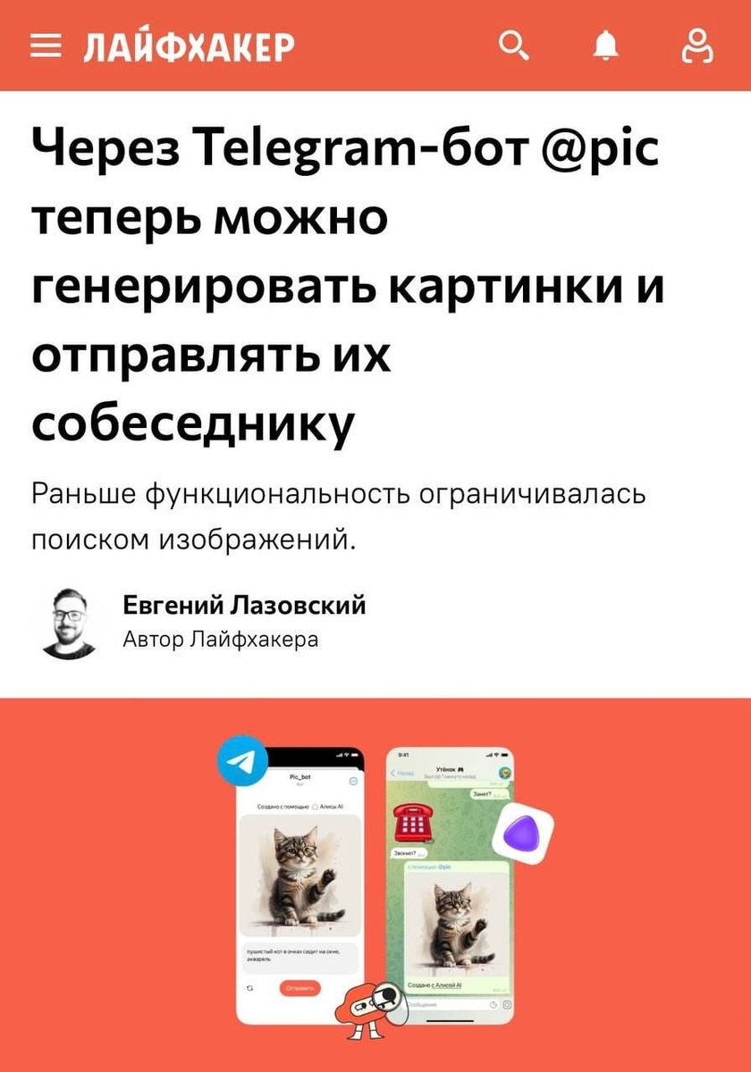 В телеге появился способ генерить картинки без выхода из чата — в бот от Яндекса добавили возможности Алисы AI