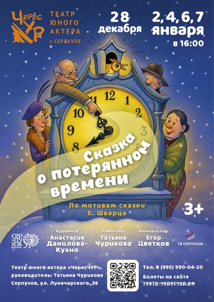 ❄️ 🎄Веселое новогоднее приключение, которое заставляет задуматься: а на что ты тратишь свои самые драгоценные минуты и часы? ⌛ ☃️Сказка, Дед Мороз и подарки🎁 ждут Вас! ☎️+7 926 1366220 🌐 театр-чересчур.рф 🚫 Возраст: 3+ 📆 28.12.2025 🕒 16:00 📆 2, 4, 6, 7 января в 16:00 🏢 Театр Юного Актёра "ЧересЧУР" 📍 г. Серпухов, ул. Луначарского, д.36 💰 Цена от: 450 до 550 ₽ 🎫 Купить билет: https://quicktickets.ru/serpuhov-teatr-chereschur #спектакльСерпухов #нгсерпухов #новогоднеепредставлениеСерпухов ⭐Поддержать канал голосом 💰 Канал Вакансии Серпухова ✅ Мероприятия Серпухов https://dzen.ru/id/66f01c6eb4c6fe60c9ca1608 http://vk.com/serpukhov_events http://dzen.ru/serpukhov_events