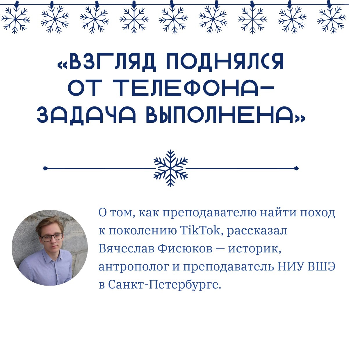 Так ли это? Что думают об этом сами преподаватели? 💭 Как говорить с поколением TikTok на одном языке, когда у них — свой цифровой диалект, а в аудитории — совсем другие правила? Этот болезненный вопрос мы обсудили с преподавателем НИУ ВШЭ — Вячеславом Фисюковым. Полная версия интервью доступна по ссылке. До встречи на Digital Learning 2026! Нестерова Полина @polliolly студентка факультета «Медиакоммуникации» НИУ ВШЭ