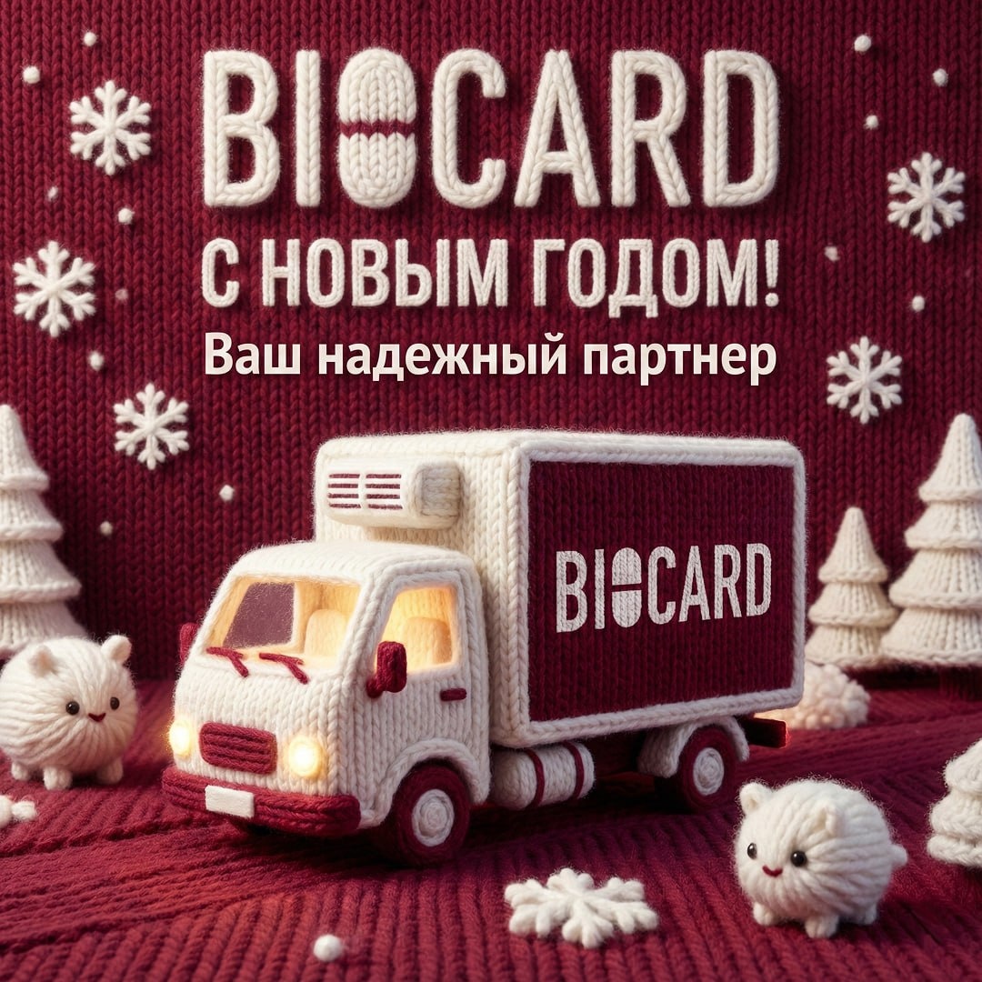 , Спасибо вам за доверие и совместную работу в этом году. Вместе мы выросли, усилили позиции в фармлогистике, расширили географию и запустили новые решения — и всё это стало возможным благодаря вам. В 2026-м желаем вам стабильности, надёжных партнёров и уверенности в каждом процессе. Пусть новый год принесёт новые проекты, сильные результаты и только хорошие новости. А мы продолжим быть рядом — поддерживать, доставлять вовремя и развивать технологии, которые делают цепочку поставок прозрачной и надёжной. С наступающим Новым годом! Команда Biocard!