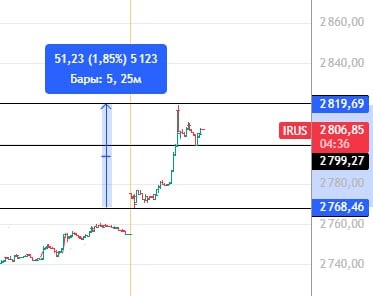 Вынос вертикальный вверх. ДА, новостями про переговоры сыпят но конкретики нет по прежнему. С учетом этого выноса у нас по прежнему перевес спекулятивного лонга. ___________ Я работаю по плану на фикс лонга тк как по прежнему не вижу долгоиграющего позитива в моменте. Ну если опять выйдет порция позитива и мы уйдем выше 2820 по ММВБ, просто выйду по стопам в рамках дня.
