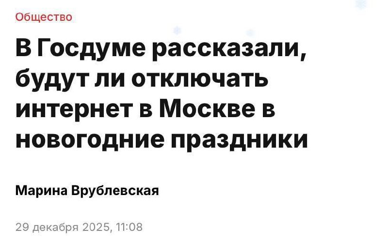 Депутат Свинцов сообщил, что отключение связи может произойти в любой день — в том числе в новогоднюю ночь — «в целях обеспечения безопасности горожан». При этом он подчеркнул, что доступ к интернету через Wi-Fi останется стабильным, а РКН не будет вводить никаких блокировок или дополнительных ограничений Москва. Новости 24/7