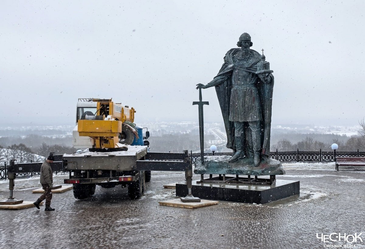 Сегодня в центре Владимира установили памятник князю Юрию Долгорукому. Деньги на его изготовление выделила Москва. Памятник смотрится несколько иначе, чем на проекте. Местом установки выбрана смотровая площадка на улице Георгиевской. Пятиметровый князь стоит, опираясь на меч, а на другой руке держит уменьшенную копию храма. Монумент виден даже с Большой Московской. Подписаться | Предложить новость