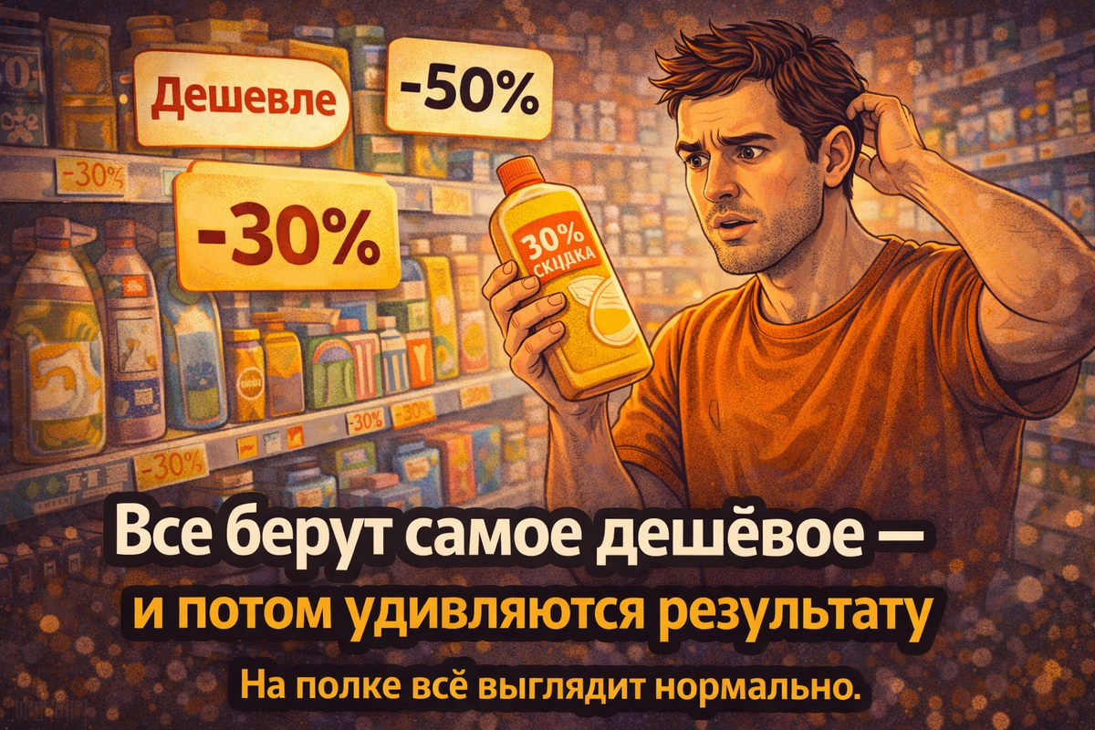 Но в быту «самое дешёвое» часто оказывается не тем, чем кажется. Возьмём обычную мелочь. Дешёвое моющее средство.