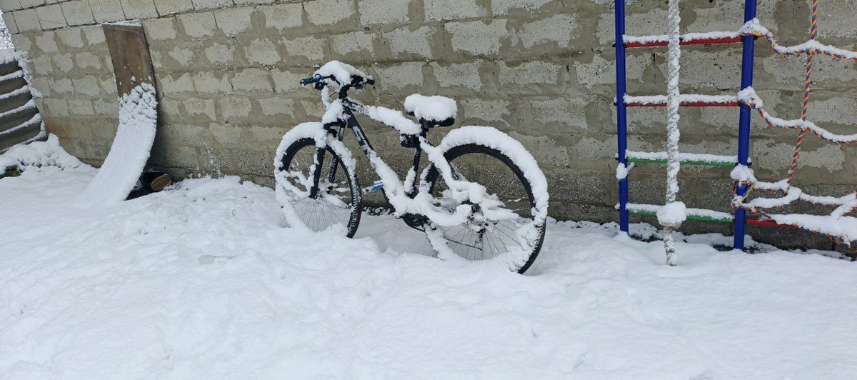 Да-да, к нам пришла зима. Сегодня за ночь примерно 7 сантиметров навалило снега. И посей час он с перерывами идет.