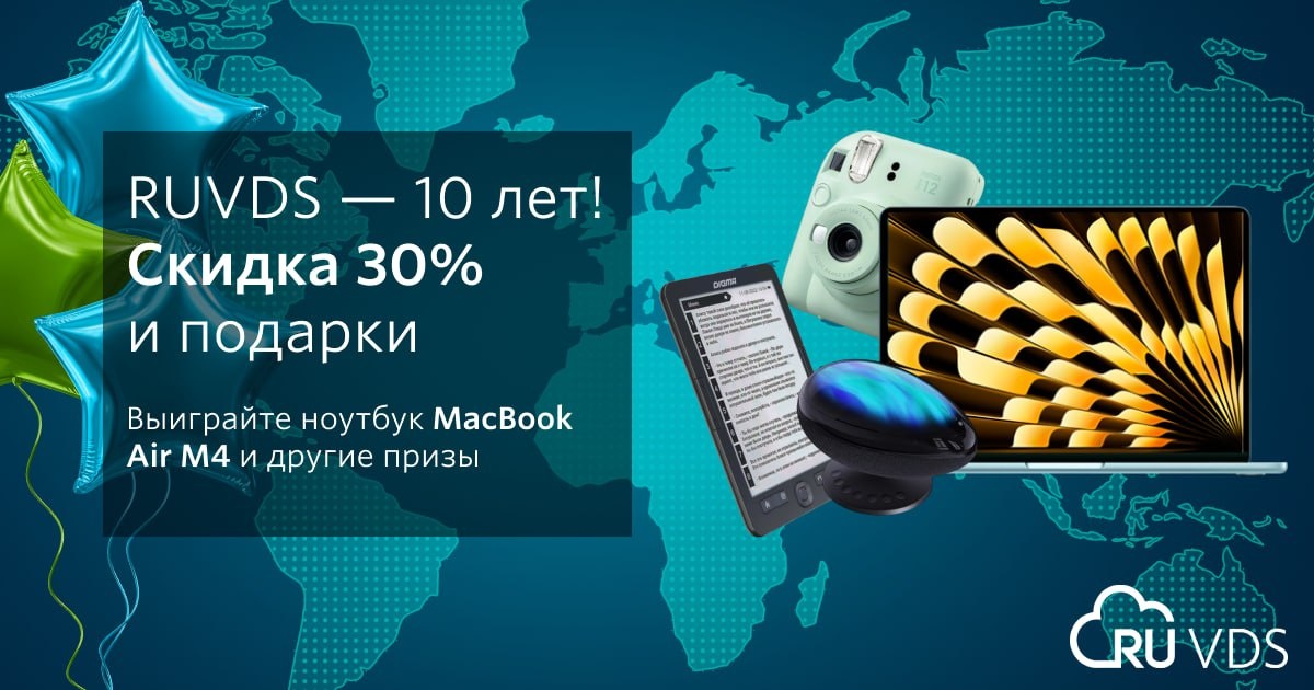 👏 Призы получили клиенты, которые пополнили баланс на самые большие суммы: 📸 Фотоаппарат мгновенной печати Fujifilm Instax Mini 12 Почта: adv***pro@***.ru 📖 Электронная книга с подсветкой Digma K2 Почта: ipko**@***.ru 🌌Проектор звёздного неба Wanbo Eva Galaxy Light Почта: **grigor@***.com Ники и почты победителей указаны со звёздочками, чтобы защитить вас от скамеров. Сотрудники RUVDS скоро напишут вам на почту для уточнения деталей. Также напоминаем, что 5 января 2026 года мы назовём имя обладателя суперприза – ноутбука MacBook Air M4. Чтобы принять участие в розыгрыше, до конца месяца пополните баланс в личном кабинете RUVDS на сумму от 10 000 рублей. ▶️И не забывайте, что продлив сервер до 30 декабря включительно на год вперёд, вы автоматически получите скидку 30%. Поторопитесь!