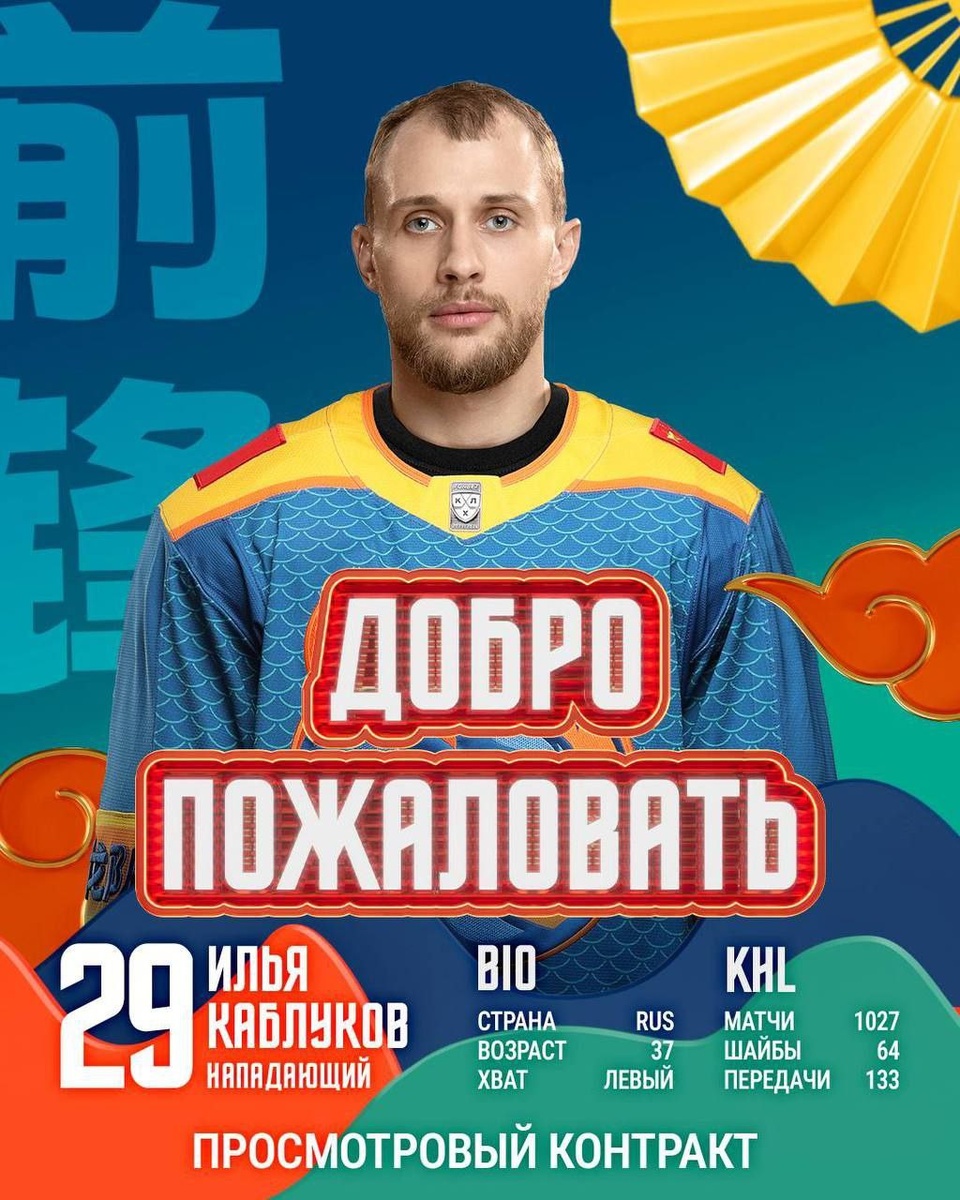 🐉 «Шанхай Дрэгонс» заключил просмотровый контракт с нападающим Ильей Каблуковым.