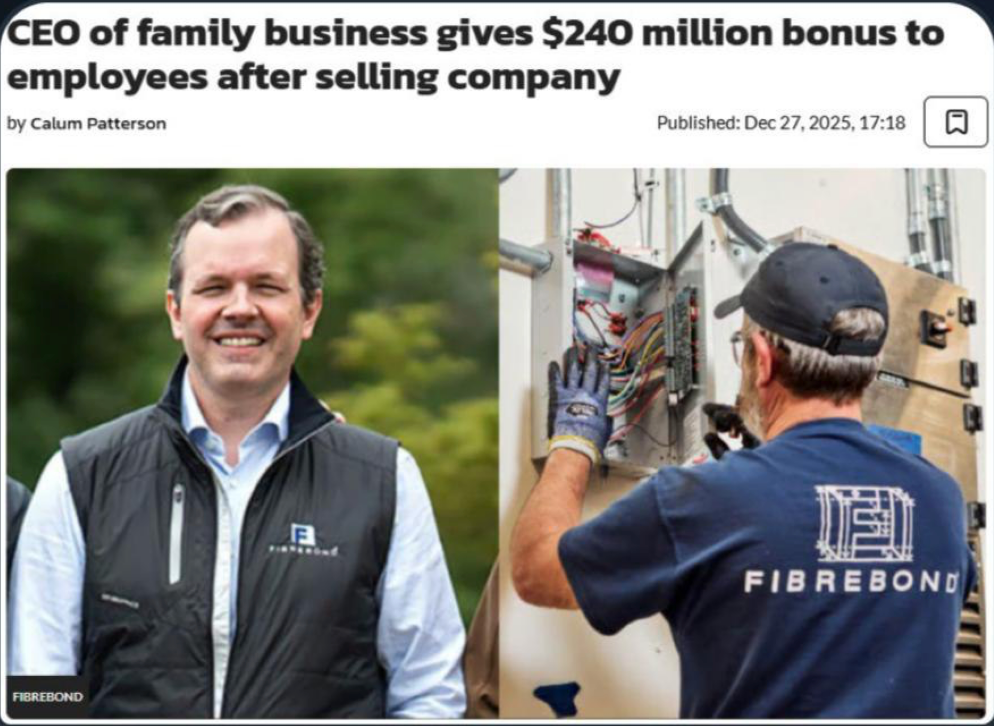 Решение выглядело неожиданным даже по меркам крупного бизнеса. После продажи компании FibreBond руководитель не стал ограничиваться формальными премиями, а направил 240 миллионов долларов (около 19,2 млрд рублей) напрямую сотрудникам. В среднем каждому к Рождеству досталось примерно 443 тысячи долларов (около 35,4 млн рублей). Для многих это означало закрытые кредиты, оплаченные дома и редкое ощущение, что многолетняя лояльность действительно имеет цену. Сам он признался, что надеется однажды получить письмо о том, как эти деньги изменили чью-то жизнь.