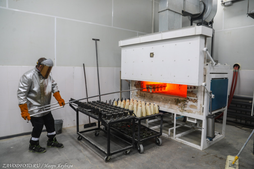 Плавка, естественно, и здесь самое зрелищное действие. Плавку производят в двух разных печах - тигельной и муфельной. Сначала в тигельной печи под воздействием высокой температуры и химических реакций свинцовый глёт (PbО) превращается в металлический свинец, который поглощает благородные металлы. А в процессе второй плавки, в муфельной печи, этот свинец вновь превращается в окись (PbО) и выводится из сплава.