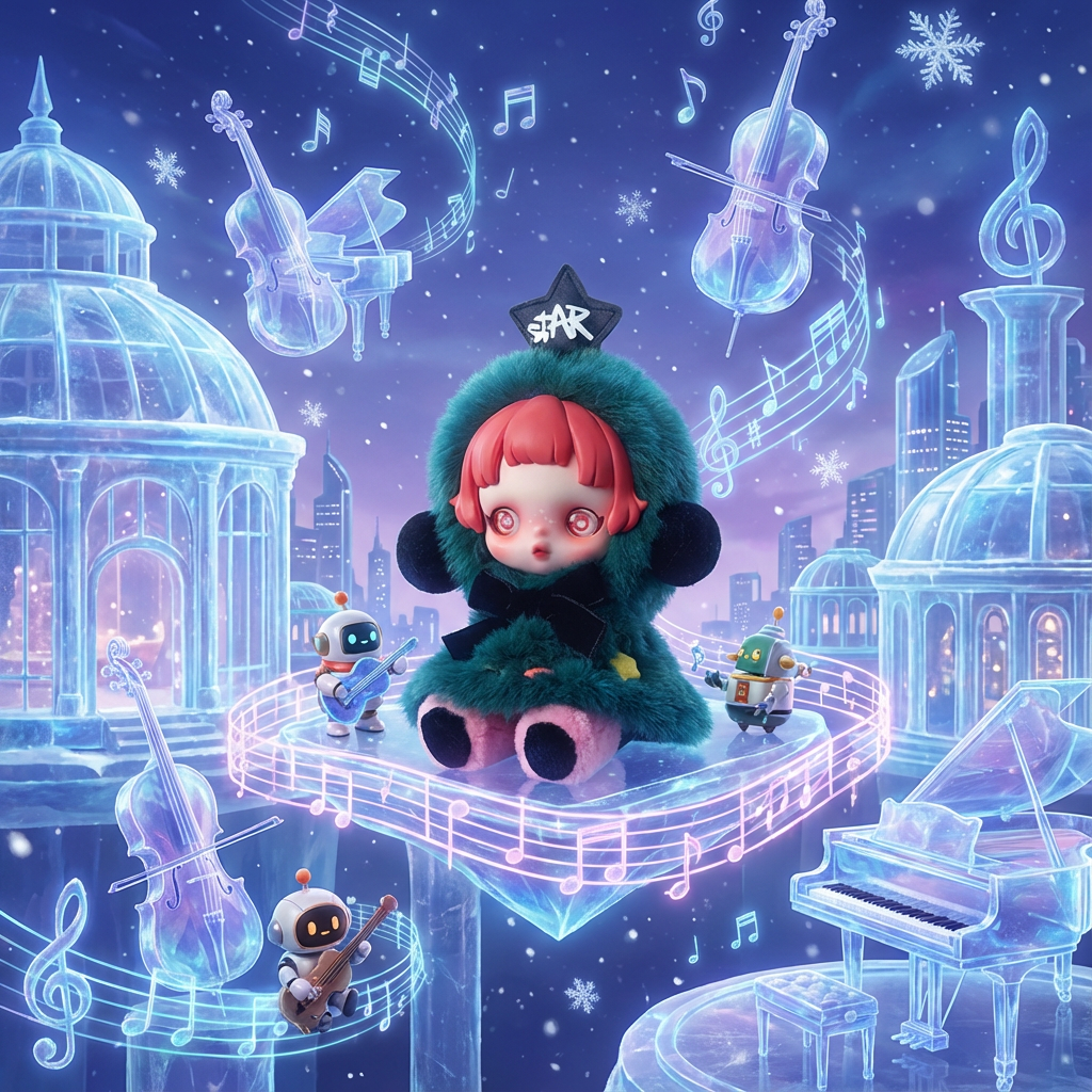 Зима, музыка и немного «криповой милоты» — это всё про SKULLPANDA Winter Symphony. Серия POP MART SKULLPANDA Winter Symphony — это семь зимних персонажей, собранных вокруг темы музыки и новогоднего настроения. Каждый образ — своё настроение зимы и свой «звук», поэтому фигурки отличаются цветом, деталями и символами в глазах. Partita: новогодняя ёлка, которая ушла в классику. Partita — персонаж в виде нарядной ёлки с музыкальными мотивами, символ праздничного концерта и семейных традиций. Вся в декоративных элементах, будто на ней одновременно висят и игрушки, и ноты, и лёгкие отсылки к классической музыке.
