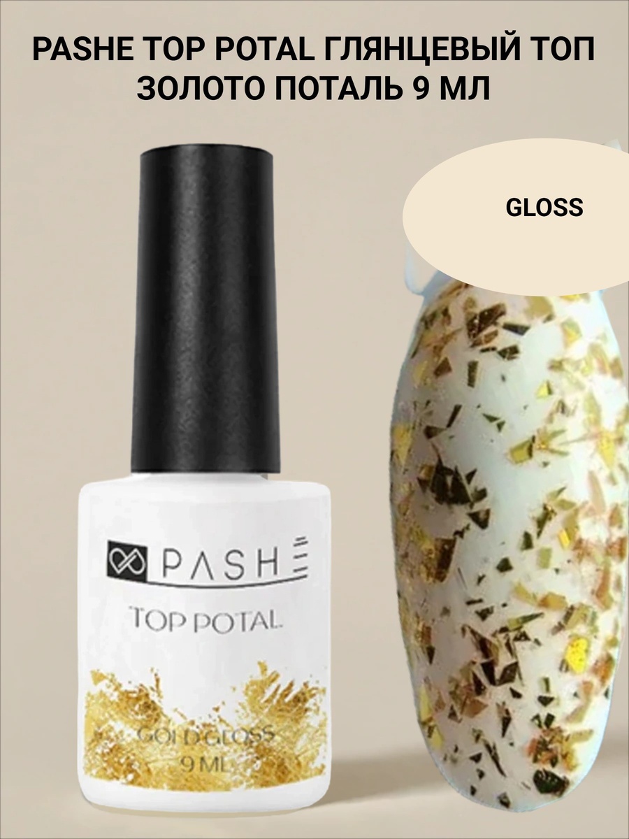 PASHE Top Potal Gloss Gold - это глянцевый топ для гель-лака, который придаст вашим ногтям роскошный золотой оттенок