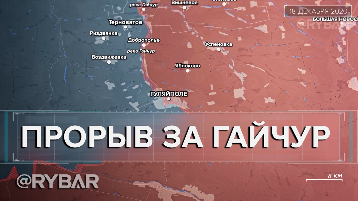 Пока на южном фланге Восточно-Запорожского направления развивались бои за Гуляйполе, противник пытался не допустить утраты контроля над правым берегом Гайчура. 🔸В результате тяжелых боёв российские войска выдавили ВСУ с правого берега реки, а также создали еще один плацдарм на его левобережье. 🔻Как развивались бои? 🔸К концу второй декады декабря ВСУ провели несколько контратак на территорию села и на легкой технике смогли забросить пехоту в подвалы строений у русла Гайчура. Тем не менее закрепиться в селе противнику не удалось. Уже в скором времени бойцы 37 бригады зачистили населенный пункт, форсировали Гайчур и стремительно заняли расположенное западнее Косовцево. 🔸Параллельно с этим севернее подразделения 36 мотострелковой бригады после освобождения Герасимовки перешли Янчур и зачистили территорию Андреевки, подняв флаги России в нескольких частях села. 🔸Вскоре подразделения бригады с целью расширения плацдарма за Янчуром выбили противника из Заречного, выровняв фронт между Пес