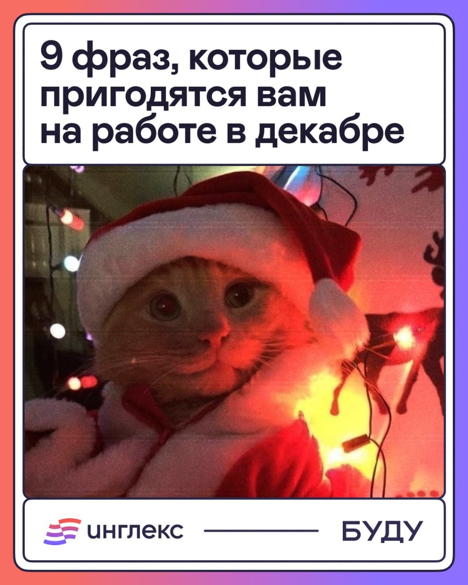 Коллеги, это финиш! То есть финишная прямая в предновогоднем рабочем забеге. Но расслабляться ещё рано 😌 Поэтому БУДУ вместе с коллегами из «Инглекс» собрали 9 фраз, которые точно пригодятся вам на работе в конце декабря. Листайте карточки и пополняйте словарный запас подтягивайте офисный английский 😩