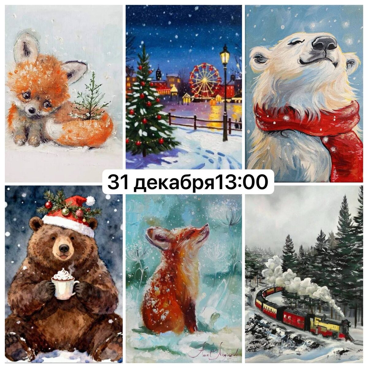 🎨 Мастер-класс по живописи для всей семьи «Зимний сюжет» с Анной Титовой! ❄️ Дорогие друзья! Приглашаем Вас на мастер-класс по живописи, который состоится 31 декабря 2025 года в 13:00 в нашей уютной студии! 🌲Этот день станет не только завершающим аккордом уходящего года, но и отличной возможностью провести время за творчеством в кругу семьи. 👩🎨Под чутким руководством Вашего любимого художника Анны Титовой Вы сможете создать свои собственные зимние шедевры. 💫Неважно, есть ли у Вас опыт рисования — Анна научит рисовать каждого, даже если Вы ни разу не держали кисть в руках! Что Вас ждет? 🍊Творческий процесс в дружеской атмосфере 🍊Возможность создать картины вместе с мамой, папой, бабушкой и детьми 🍊Подарки: ароматный чай, вкусняшки и мандарины для создания праздничного настроения! 💰Стоимость участия: Холст 20*30 см — 900 руб. Холст на подрамнике 30*40 см — 1500 руб. Холст на подрамнике 40*50, 40*40 см — 1900 руб. * вдвоем на одном холсте +500 руб ✨Пусть этот день буде