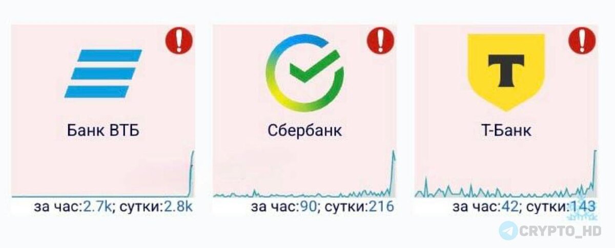 ❌🇷🇺 Сбой сразу у трех крупных банков в РФ – у людей массово не проходят транзакции/оплата или не открываются приложения.