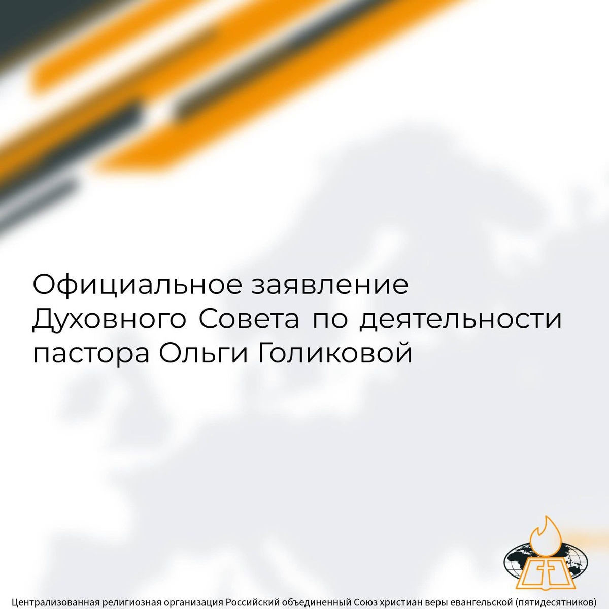Официальное заявление Духовного Совета РОСХВЕ(п) по деятельности пастора Ольги Голиковой