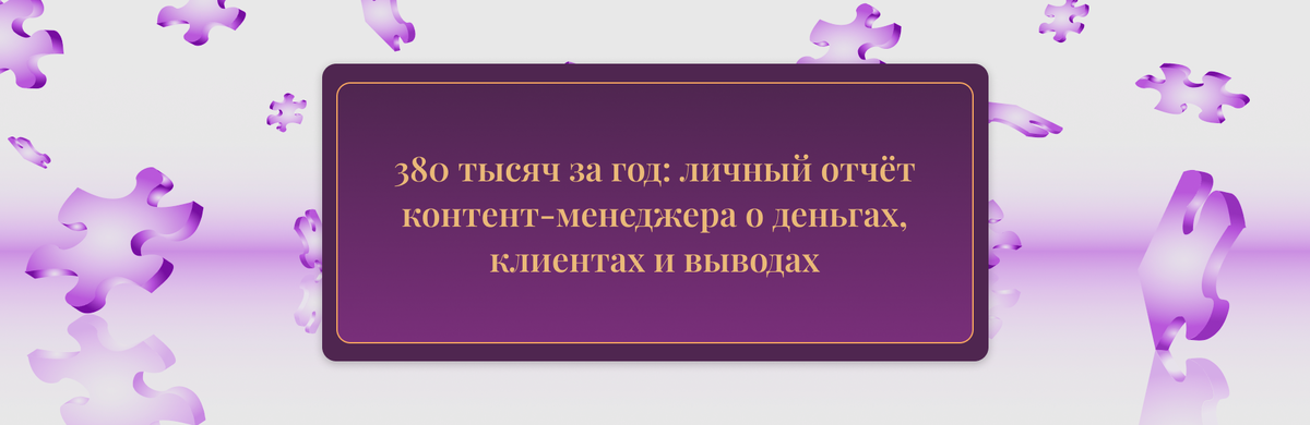 Личный отчёт о деньгах, клиентах и выводах Разбираю свой рабочий год по цифрам. Сколько заработала, откуда пришли лучшие клиенты и на что уходило время. Честно и с графиками. Я сознательно выбрала такой график: 6 продуктивных часов в день. Это позволяет работать качественно, не выгорать и учиться. Моя ценность в результате, а не в отсиженных часах. Проанализировала все каналы. Главный вывод: важно не количество заявок, а их качество. 🏆 Чемпион: интернет-магазин печатного оборудования. За год принёс 171 000 ₽. Мы в разных часовых поясах, но есть чёткие процессы. Сотрудничаем до сих пор. 📉 Учитель: компания по продаже пиломатериалов. Заработала 10 500 ₽, но морально — провал. Клиенту нужны были не тексты, а «светская беседа». Теперь я на раннем этапе чувствую таких заказчиков и вежливо отказываюсь. Экономит нервы. Я перешла от копирайтинга к контент-менеджменту. Теперь работаю в партнёрстве с дизайнером и могу вести проект «под ключ»: текст, визуал, наполнение. Делаю упор на ка