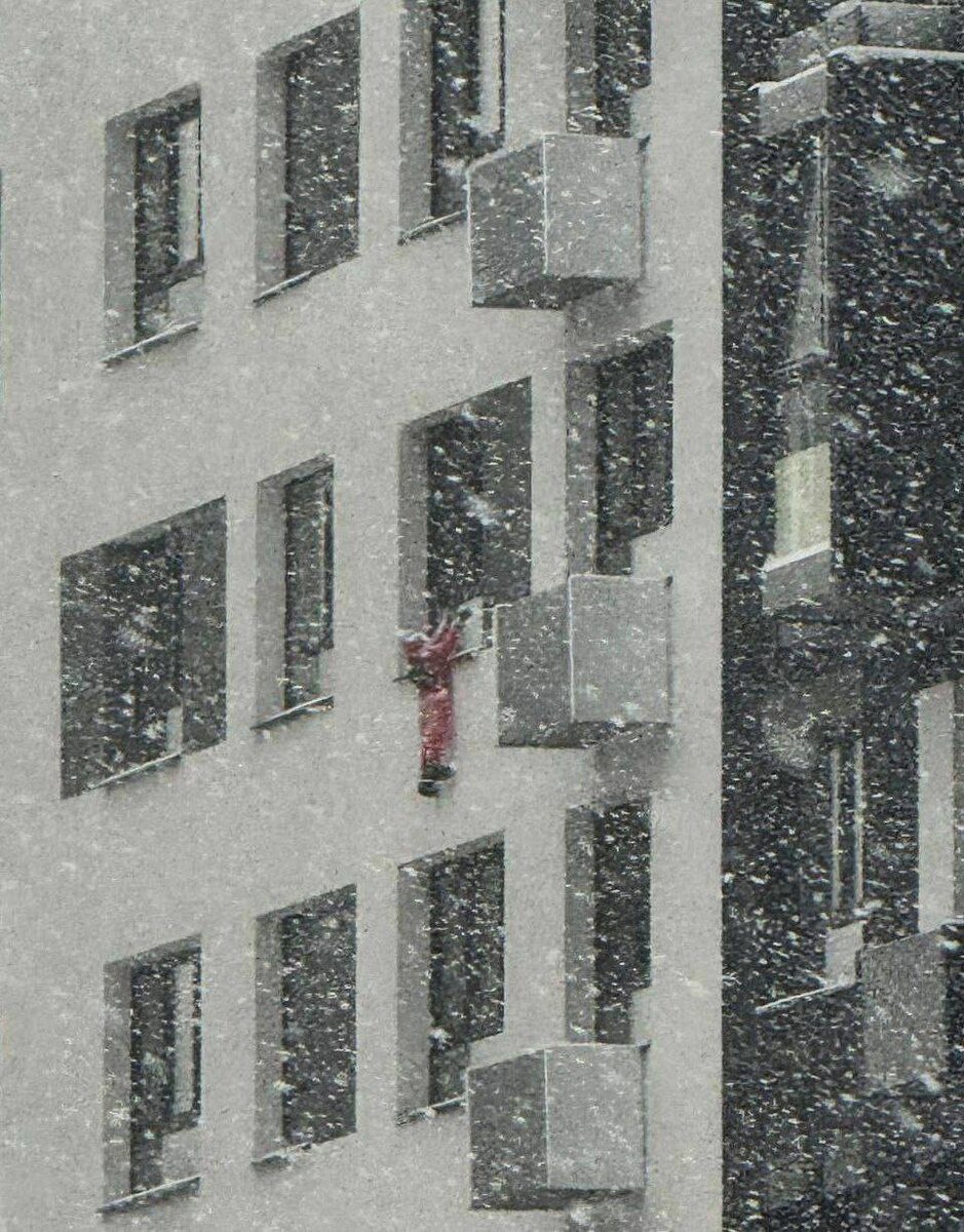 Дед Мороз пытается забраться в ЖК «Мытищи Парк