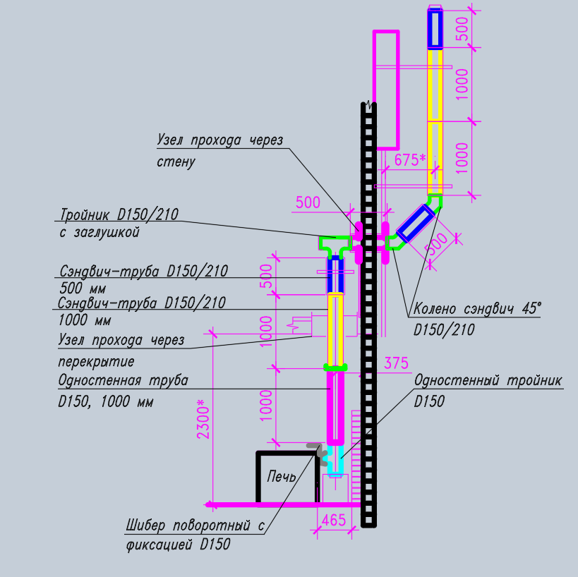 Печь Топ-Модель 300, кратко рекомендации по монтажу дымохода (без воды)