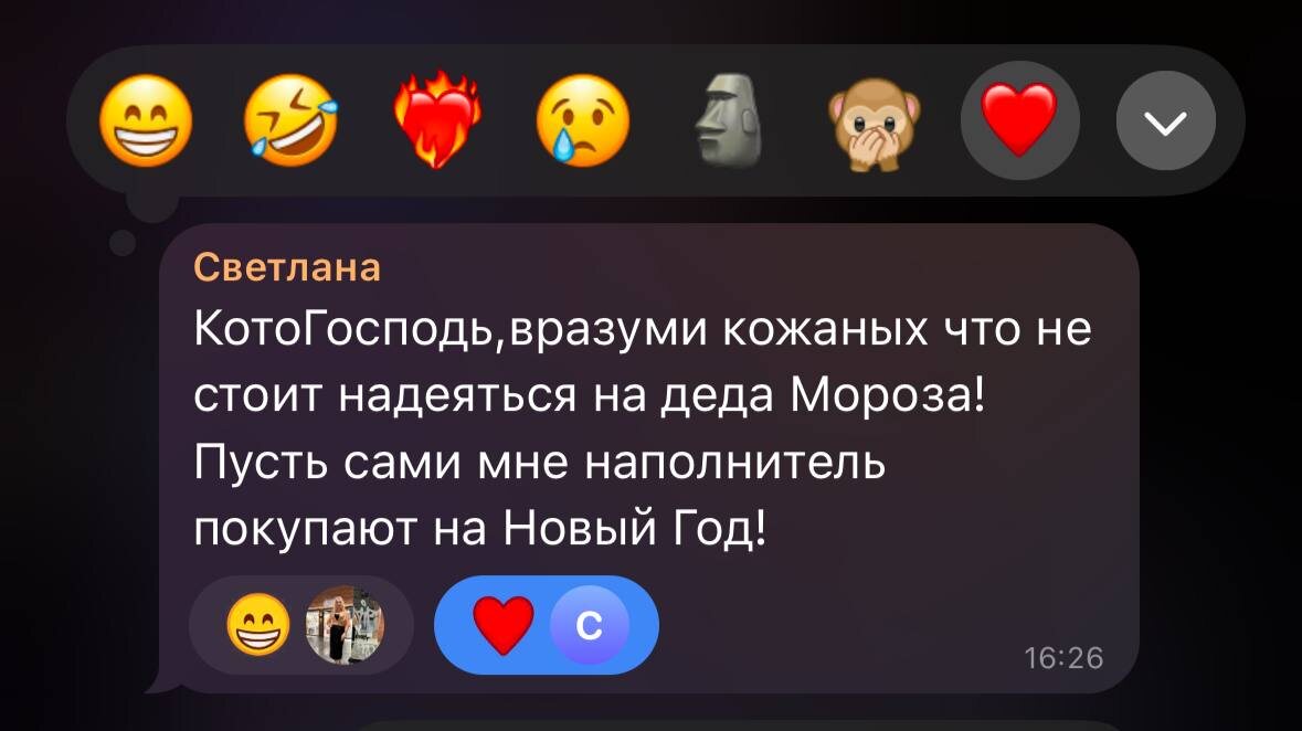 ❤️🔥 Мы готовы объявить итоги! Скажем честно, наша редакция долго спорила по поводу победителя, но большинство голосов победила Светлана @Svetliahec и ее комментарий, который напоминает, что чудо — это, конечно, хорошо, но вот о наполнителе лучше подумать заранее 🫶🏻 И наш календарь отправляется к ней! Хотите еще один конкурс на Новогодние праздники от нас?)
