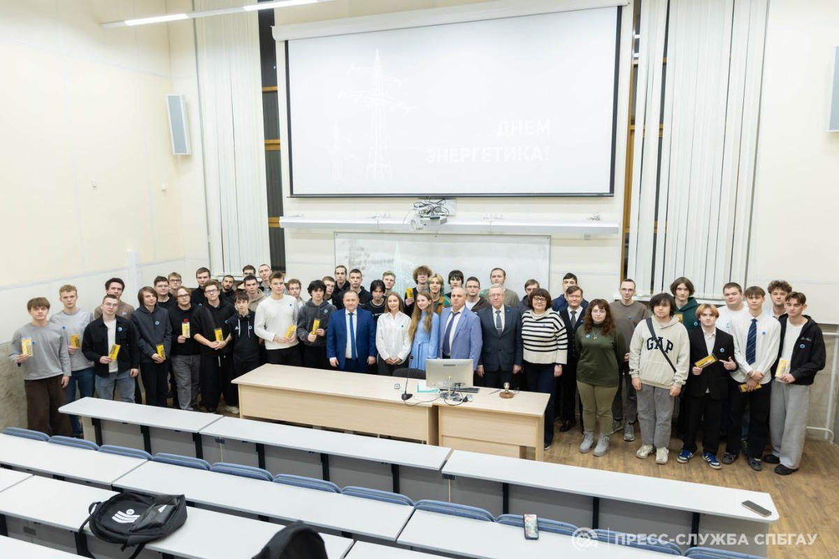 🎓📖 Ведущий инженер #УКРоссетиЛенэнерго Александр Гущинский стал почетным гостем на торжественном посвящении первокурсников Санкт-Петербургского государственного аграрного университета (СПбГАУ). Мероприятие было приурочено к профессиональному празднику – Дню энергетика и состояло из нескольких этапов, включающих познавательную лекцию об устройстве и ключевых задачах учебно-тренировочного полигона. 👥🌃 Александр Геннадьевич рассказал учащимся об оборудовании #УКРоссетиЛенэнерго, его работниках и реализуемых образовательных программах. Ребята смогли задать все интересующие вопросы об обучении и повышении квалификации электроэнергетиков, молодежных проектах #РоссетиЛенэнерго и движении студенческих отрядов старейшей электросетевой компании страны. 🥇🤝 После окончания лекции Александр Геннадьевич вместе с руководством СПбГАУ вручил первокурсникам символические подарки – индикаторные отвертки и значки университета. «Вы выбрали одну из самых значимых в современном мире профессий.