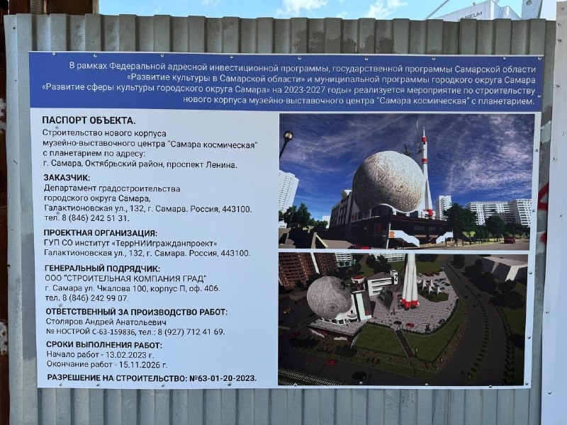 Площадку одного из титульных строительных проектов самарского региона – планетария возле музейно-выставочного комплекса «Самара Космическая» покинул субподрядчик, занимавшийся заливкой монолитно-бетонного основания здания. Как сообщили OBOZ.INFO в строительной компании «Град», являющейся генеральным подрядчиком возведения объекта, к субподрядчику неоднократно высказывались многочисленные претензии как от ГУП СО «Стройконтроль», так и от СК «Град», которые приводили к многочисленным переделкам и срывам сроков выполняемых ими работ: https://oboz.info/genpodryadchik-stroitelstva-samarskogo-planetariya-rasstalsya-s-problemnym-ispolnitelem/