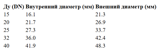 В системах водоснабжения, предназначенных для питьевой воды, обычно применяют трубы следующих размеров: