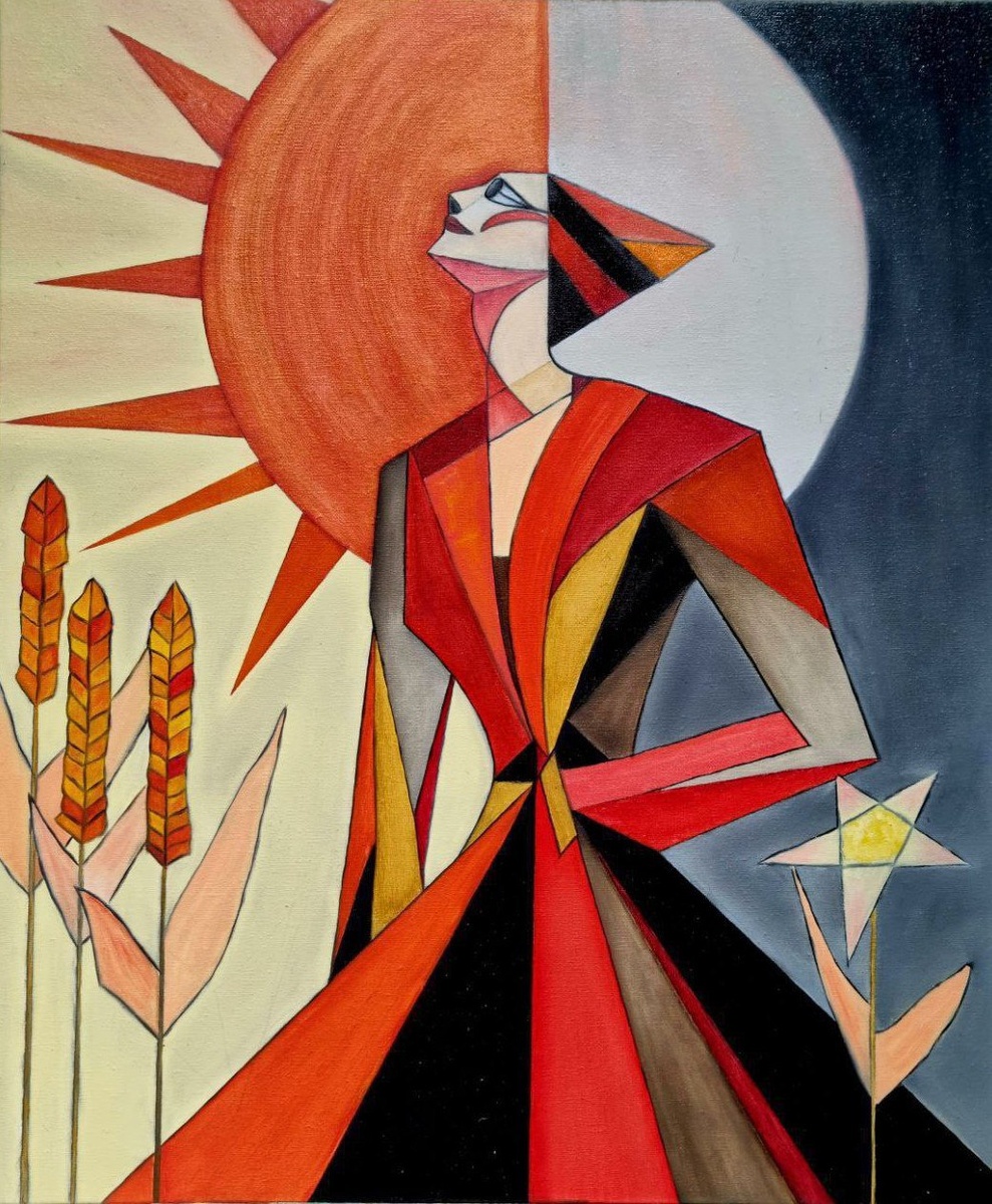 Картина «Пора впустить в себя солнце» стала победителем приза зрительских симпатий на выставке «Громкий шёпот противоположностей» в галерее Мастер в Санкт-Петербурге. #ВалерияНикифорова написала стихотворение к серии работ Сурена «Грани Красоты» в которую входит эта картина! Стихотворение вошло в ее уже изданную книгу стихов «Об искусстве и любви»: Пора впустить в себя солнце Эта женщина смотрит смело вперед, Яркий след оставляя в судьбах других. В душу избранных лишь допускает... Непокоренная, она, словно дальняя планета, недосягаема. Своим сиянием привлекает... Мужчины жаждут ее внимания. Ох, эти грани красоты, манящий облик Королевы! В толпе поклонников она мечтает об одном: Найти родного человека... А время так идет неспешно, И вмиг она решает: Пора впустить в себя солнце! Открыть себя для мира и любви! И пусть не сразу сбудется желанье. Идя навстречу сердцу, Она точно знает, Что непременно явится единственный, неповторимый. И зародится чувство нежности, Прекрасной, как цве