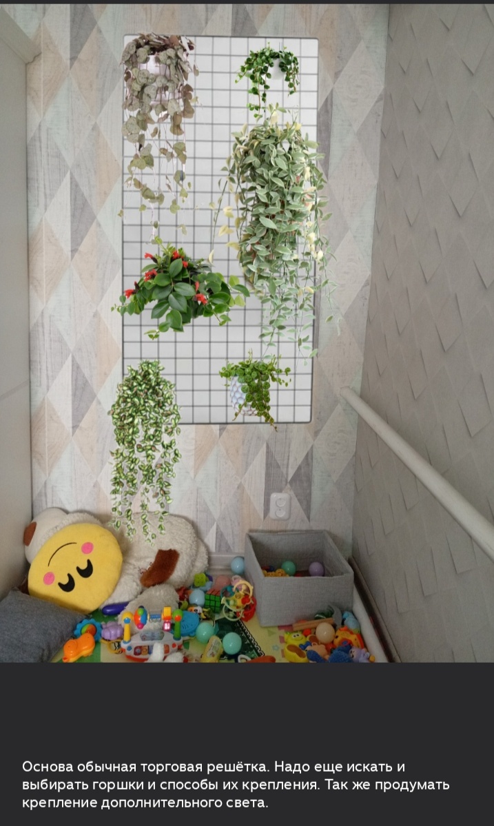 ⬆Изначально на этой стене я планировала обустроить торговую сетку, но в какой‑то момент просто перегорела этой идеей. Сейчас на том месте стоит полка, на которой я хочу разместить 7 алоказий — получится настоящий алоказиевый уголок!
