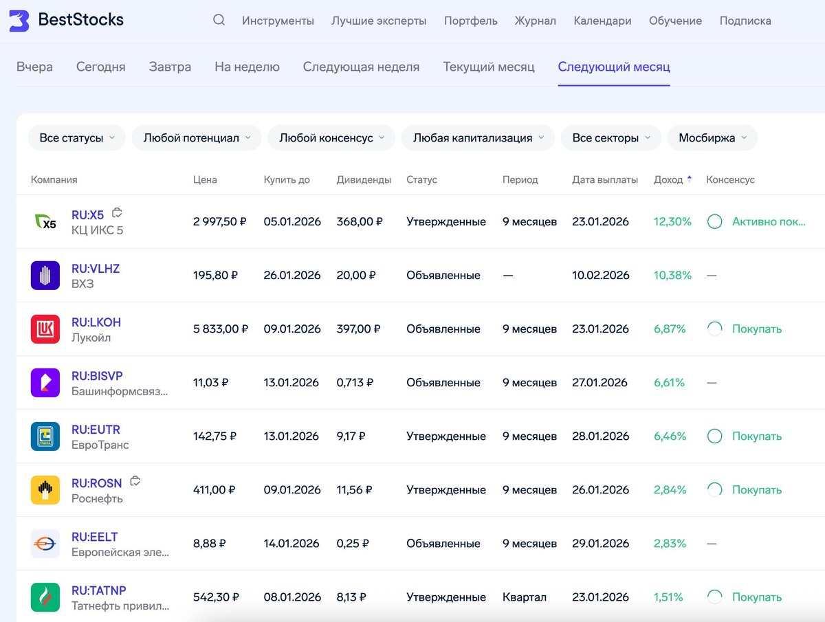 Подборка максимальных дивидендов в январе 2026 года на российском фондовом рынке