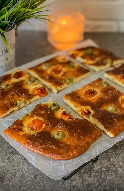 Очень жду от вас ❤️❤️❤️ и обратную связь 💬, ведь я для вас очень стараюсь! Это безумно вкусный и ароматный хлеб, который традиционно готовят в Италии. Предлагаю попробовать приготовить ее в низкоуглеводном варианте Автор 🎥 ketoparanoia Состав: 🧀Моцарелла 200г 🧀Крем чиз (творожный сыр) 80г 🥄Мука миндальная 80г 🥚Яйцо 1 шт 🧈Масло сливочное 10г 🥄Чеснок сушеный 1/2 чл 🌱Зелень сушеная 1/2 чл 🧂Соль, специи 🫒Оливки 25г 🍅Черри 50г (любые томаты, можно вяленые) Приготовление: 1. Моцарелла натереть на терке, добавить крем чиз и растопить в микроволновой печи (3 раза по 30 сек, каждый раз перемешивая) до расплавления сыра и образования однородной массы. Можно это сделать на водяной бане 2. Добавить яйцо, перемешать, добавить муку, соль, специи, вымесить однородное тесто (если в процессе сыр немного затвердеет, то можно еще чуть массу прогреть) 3. Распределить тесто на пергаменте (при необходимости его смазать) в виде прямоугольника, толщиной 1 см 4. Положить сверху оливки и помидоры ч