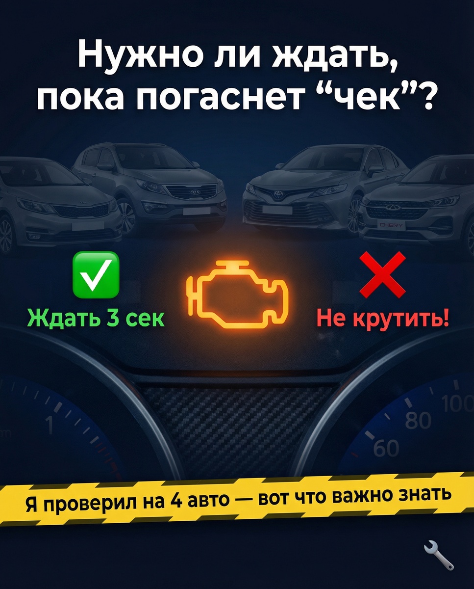 Но в 20% случаев такая спешка провоцирует ошибки ЭБУ — и даже маскирует серьёзные неисправности. Я проверил 4 автомобиля (Kia Rio, LADA Granta, Toyota Corolla, Chery Tiggo) — и выяснил: ждать или не ждать — зависит от модели.
