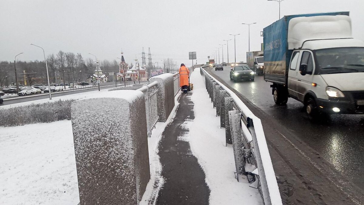 Сегодня улицы Петербурга убирают 837 машин и 1168 дворников