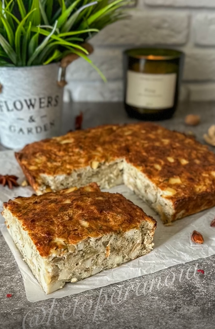 Пироги с капустной начинкой - классика кулинарии. Готовится он очень просто, а получается нежным и очень вкусным! Автор 🎥 ketoparanoia Для теста: 🥚Яйцо 3 шт 🥛Сметана 100 г 🥄Псиллиум 8 г 🥄Бамбуковая клетчатка 15 г 🥄Мука миндальная 30 г 🥄Разрыхлитель 1/2 чл 🧂Соль, специи Для начинки: 🥬Капуста 300 г 🥚Яйцо 4 шт 🌱Зелень 🧈Масло для жарки 10 г Приготовление: 1. Готовим начинку: - Нашинковать мелко капусту, обжарить до готовности, на масле, с добавлением соли и специи. Остудить - Яйца отварить вкрутую, остудить, порезать кубиками - Зелень порубить 2. Готовим тесто: - Взбить яйца до загустения и увеличения в объеме (взбивать 10 мин) - Добавить к яйцам сметану, перемешать - Смешать сухие ингредиенты, добавить к массе, перемешать 3. Готовим пирог: - Выложить в тесто все ингредиенты для начинки, перемешать - Переложить массу форму (размер 17х17 см), распределить по поверхности - Выпекать в предварительно разогретой духовке при 180° 45 минут Примерное КБЖУ на 100г: 132/7/10/3 (клетчатк