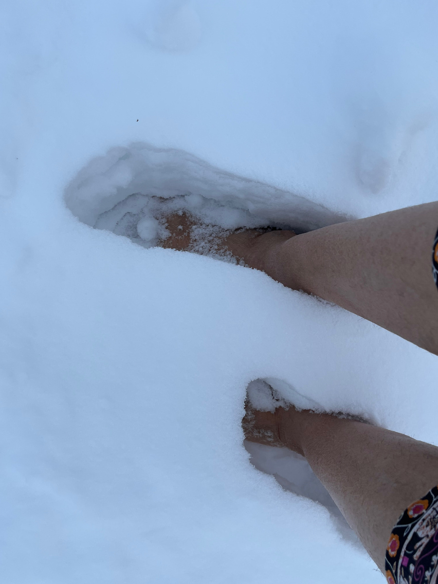 И я каждое утро сначала выбегаю на снег босиком, но ноги быстро мерзнут, потому как проваливаюсь выше чем по щиколотку..