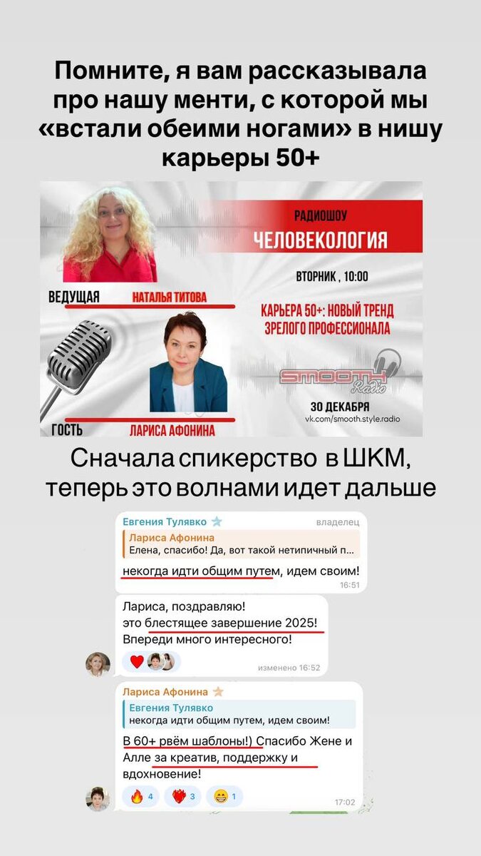 Наша менти Лариса из последнего потока менторской уверенно заняла нишу «Карьера 50+».