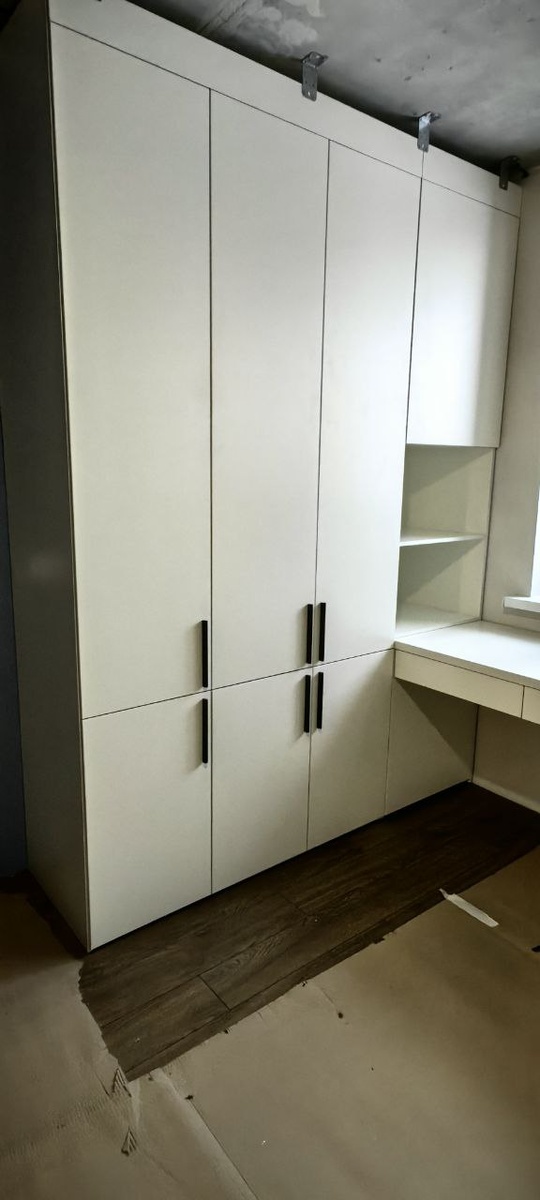 Рабочая зона в детскую комнату для мальчика. Полностью из белого цвета. Рядом сделали салатик с подсветкой.