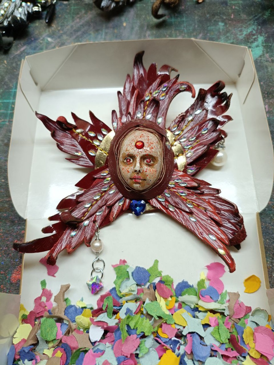 🪽👼 Брошь из натуральной кожи и холодного фарфора " Серафим". Возможен повтор на заказ