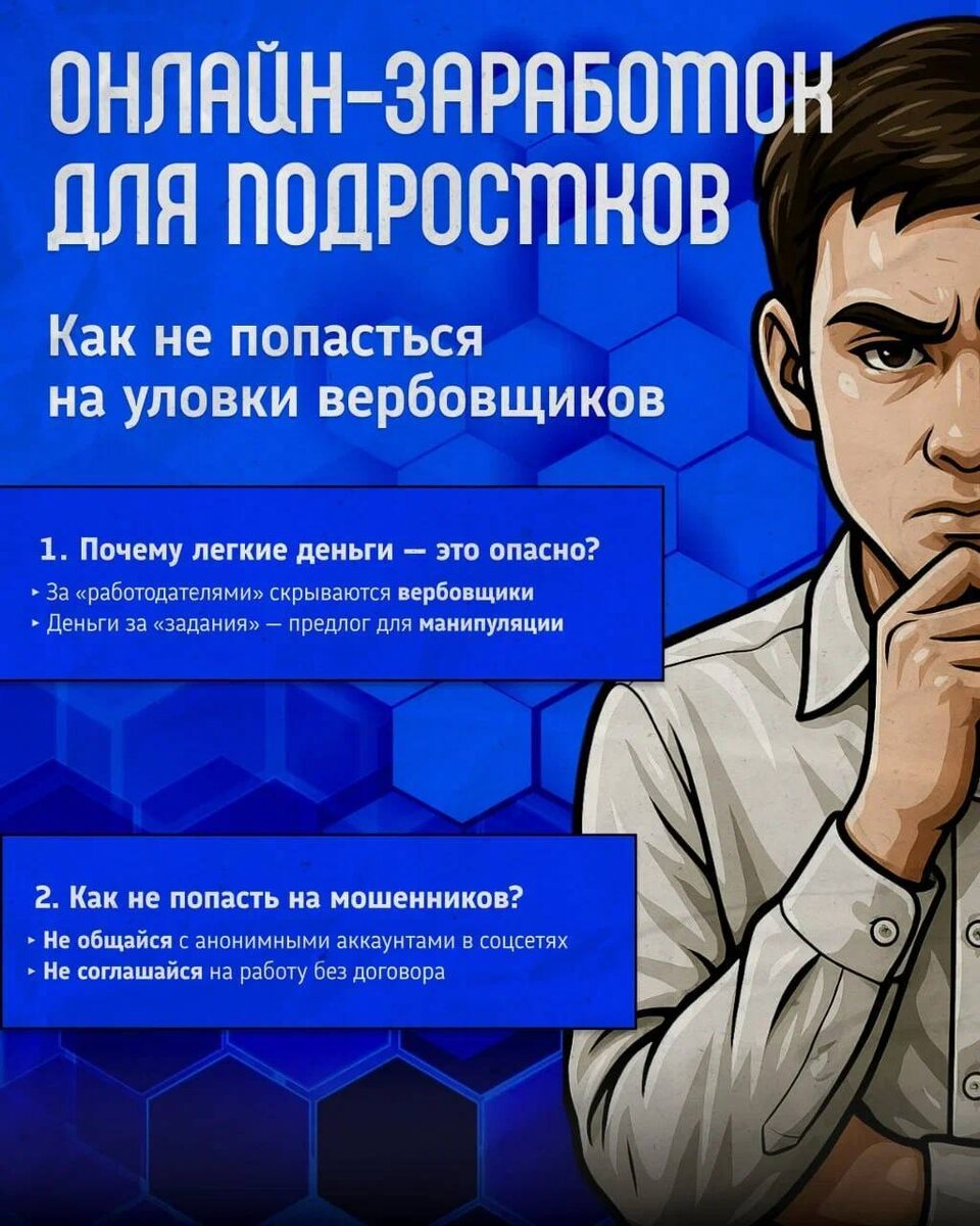 ⚠️ В интернете много опасностей, особенно для подростков, которые хотят заработать. Главное — запомнить правила: 🔹Не доверяй предложениям мгновенного и легкого заработка. 🔹Никогда не передавай личные данные и пароли. 🔹Не оплачивай участие в сомнительных проектах или покупку «инструментов» для заработка. 🔹Всегда обсуждай предложения с родителями или взрослыми, которым доверяешь. 💡Настоящий заработок требует времени, знаний и усилий — не поддавайся на уловки мошенников! Береги себя и свои данные! #киберполициянасвязи_МинцифрыКБР