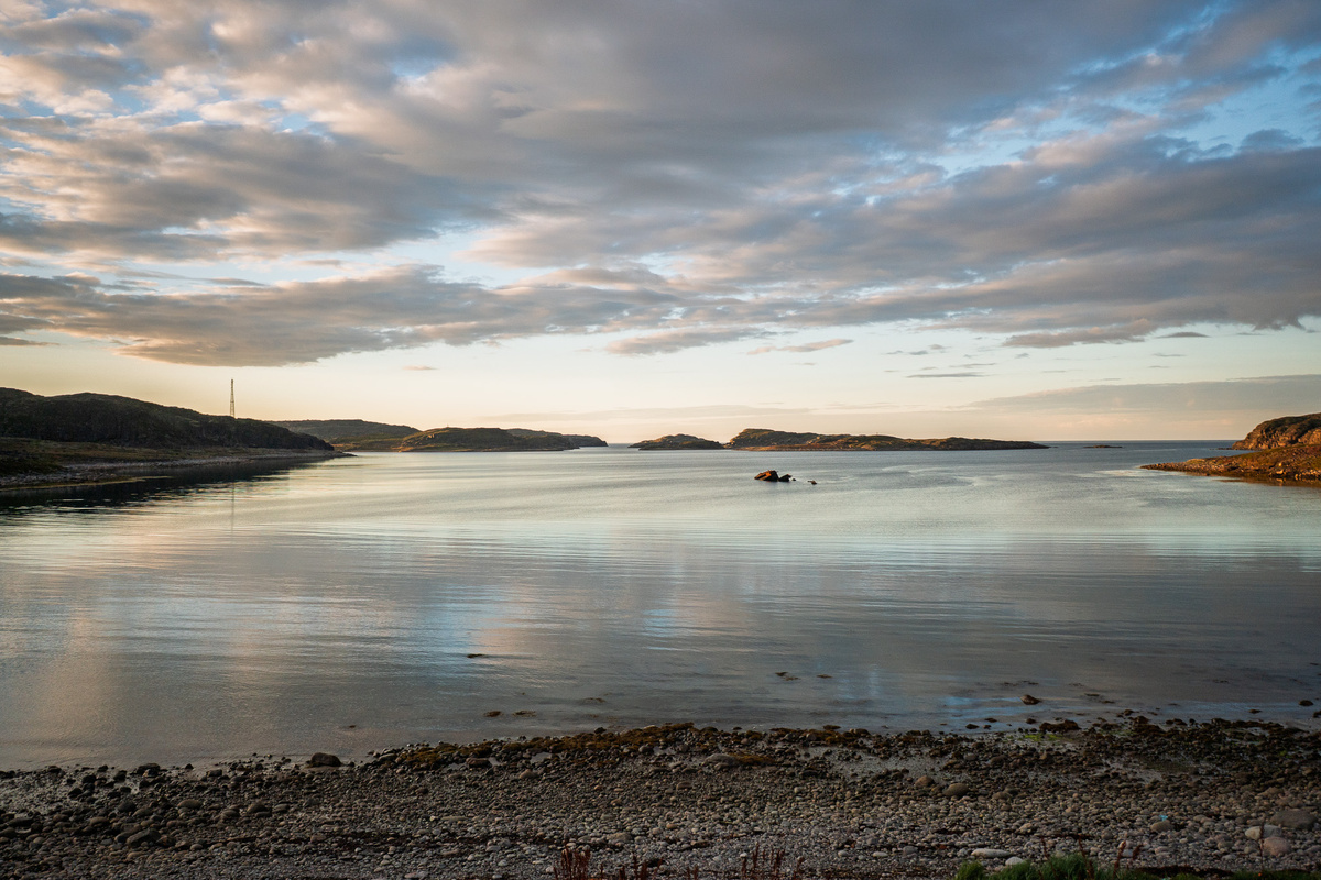 Середина сентября. Мы проснулись в бухте, всего в двух километрах от Дальних Зеленцов. Вода лежит ровно и спокойно, как будто море сегодня в режиме «ничего не трогаю». Воздух, чистый и холодный, сразу возвращает в реальность и намекает, что романтика романтикой, а нос лучше прятать в бафф. Бегемот дремлет рядом и выглядит как существо, которое уже всё про эту жизнь поняло и теперь просто наблюдает. Вчера асфальт закончился внезапно — без прощаний и объяснений. Дальше пошёл гравий, потом камни, и начался разговор уже не с дорогой, а с Бегемотом. Тут ты не едешь, а осторожно договариваешься: «Я тихонько, а ты не ломайся». Север быстро расставляет акценты: сначала отбирает асфальт, потом уверенность, а взамен выдаёт терпение и умение радоваться каждому преодолённому метру. Мы поднялись на холм и зависли. Внизу лежал посёлок — аккуратный, правильный, словно макет из магазина «Юный архитектор», который забыли убрать на ночь. Домики стоят ровно, окна пустые, людей нет. Тишина такая, что даж