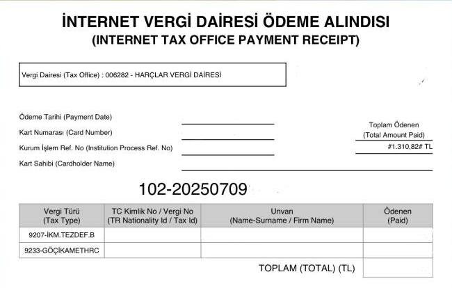 Как оплатить пошлину за ВНЖ в Турции и скачать электронный чек без посещения налогового офиса или миграционного центра. ✅ Преимущества: • Быстро, можно оплатить заранее в любой момент; • Сохраняется чек, в случае отказа можно вернуть пошлину; • Для оплаты не требуется турецкий ИНН; ❗️ Важно: • Оплата возможна только турецкой картой; • vize harcı - визовый сбор (для граждан 🇺🇦🇧🇾 и тд) оплачивается лично в налоговой; ✔ Как оплатить пошлину онлайн (ikamet harcı): 1) Заходим на сайт налоговой службы по ссылке; (https://dijital.gib.gov.tr/hizliOdemeler/gocIdaresiIkametTezkeresiHarciOdeme) 2) Вводим номер Tahakkuk No (он находится в анкете-заявке на ВНЖ на первой странице внизу); 3) Пишем данные карты для оплаты; 4) Скачиваем чек! ⚠️ Если чек не скачался или произошла ошибка, то его можно найти здесь: https://spos.gib.gov.tr/Spos/Sorgu ✔ Заполняем форму: 1. Дата платежа, номер карты, точная сумма платежа (есть в заявке на ВНЖ), tahakkuk numarası. 2. Нажимаем Sorgula 3. Скачиваем PDF с кв