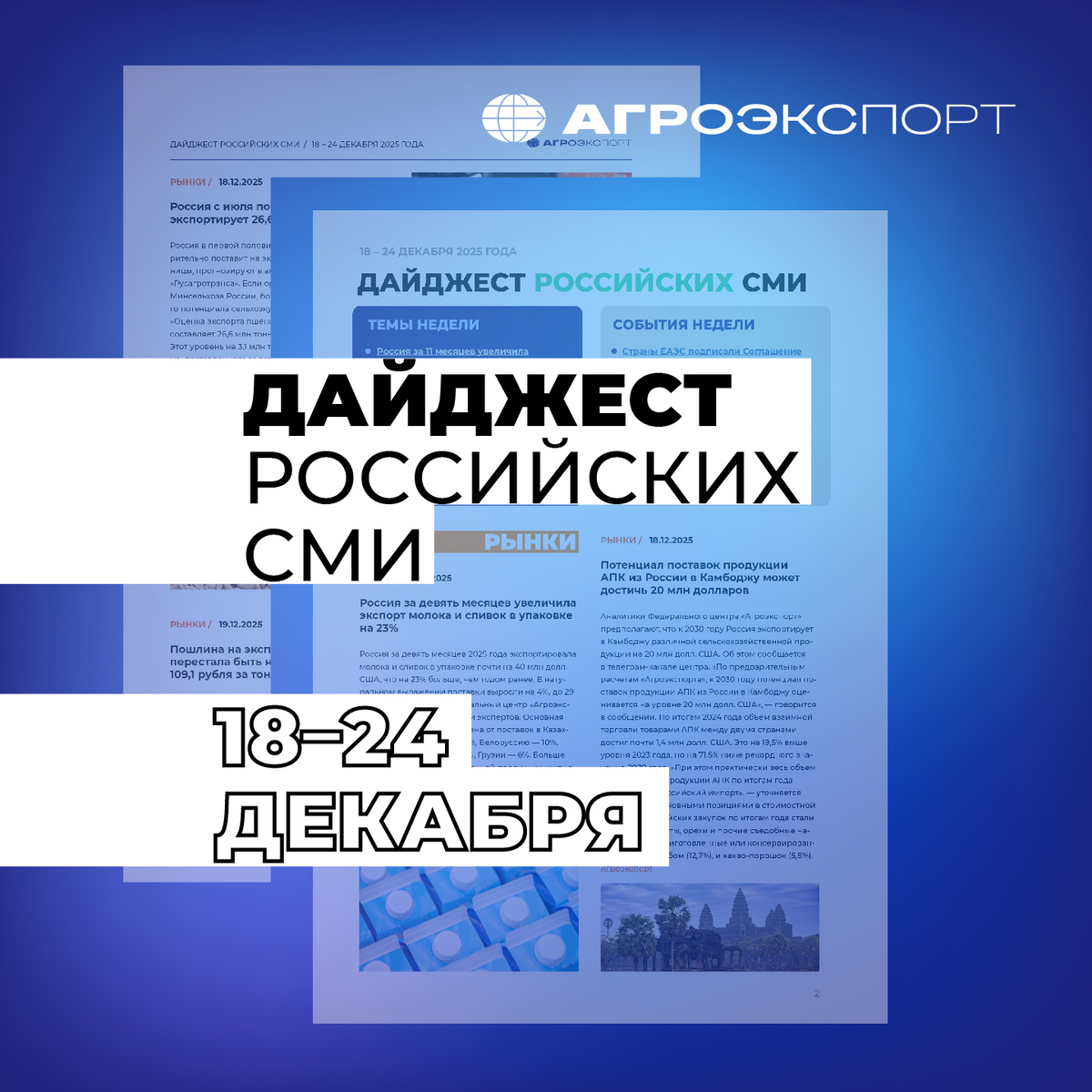 Дайджест российских СМИ от «Агроэкспорта» (18 – 24 декабря 2025 года)