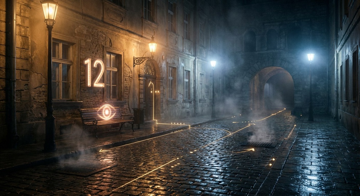 Анна шла без особой цели — привычный круг по мокрой брусчатке, чтобы проветрить голову. Лавочка у дома №12 всегда казалась ей самой обычной: покосившаяся доска, узор решётки, следы от чьих‑то рук. Сегодня она мерцала, как живой глаз, и когда Анна остановилась, мерцание стало ответом. По земле проступили тонкие золотые дорожки, стрелки и точки, словно кто‑то начертил маршруты прямо под её ногами. Один путь вильнул к её подъезду, другой уполз в сторону парка, третий — к безымянной арке, за которой никогда раньше не было ничего, кроме двора и пустоты.