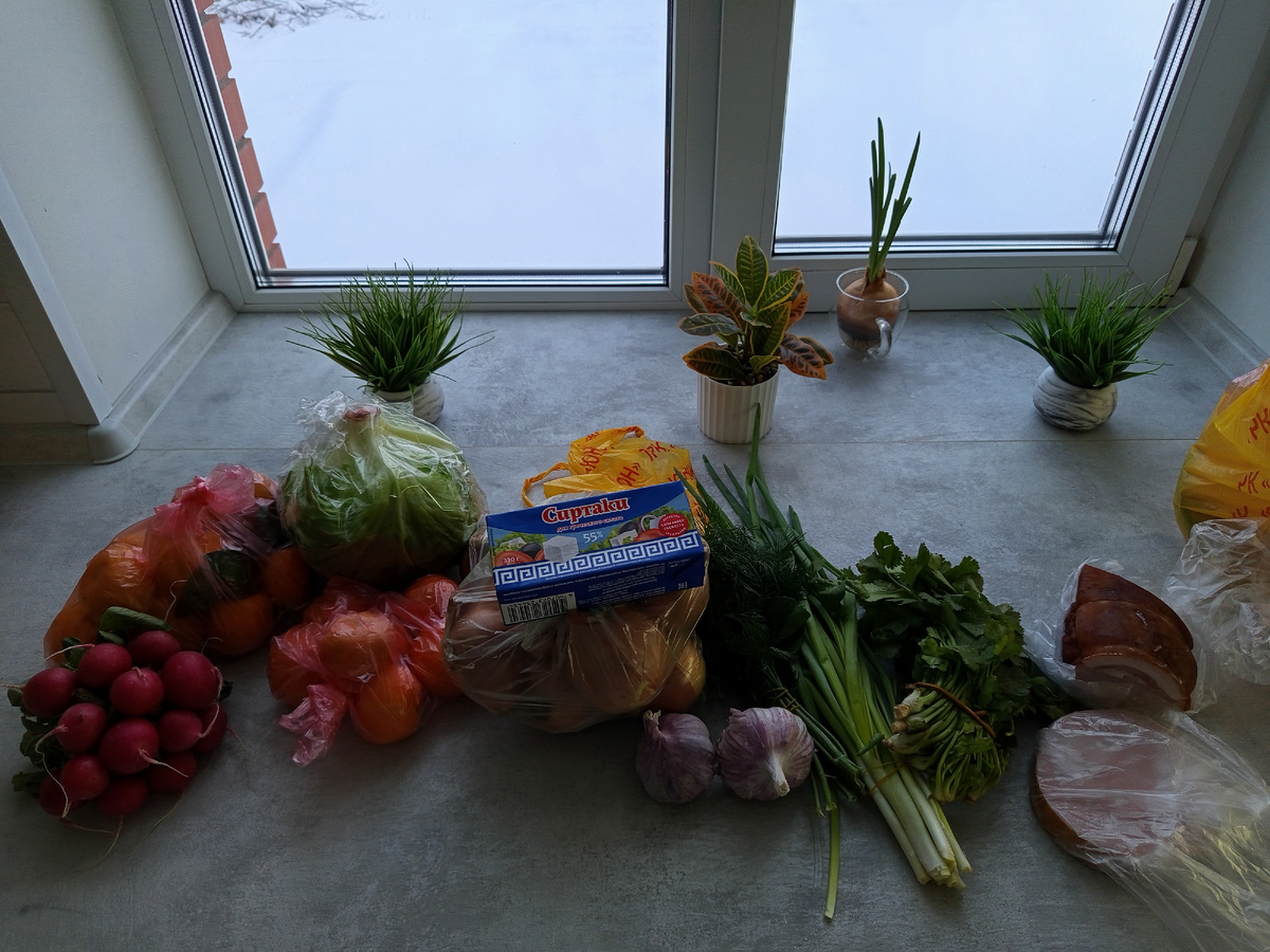 Ранее я писала, что сделала финальную закупку на Новый год. Оказалось, показалось. Поехали с мамой за селедкой и мандаринами, но к селедке ещё приклеилась форель, зелень, редиска, сок томатный, лук, колбаса, карбонат. Как всегда, ничего лишнего. Форель часть засолила и вторую часть для запекания оставила.