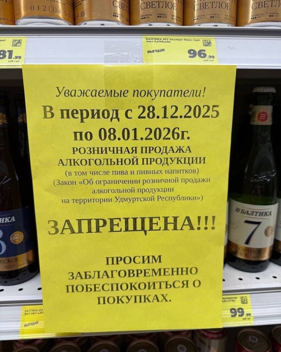 В соседней республике в Удмуртии ввели полный запрет на продажу алкогольной продукции, а у нас график какой-то бесполезный