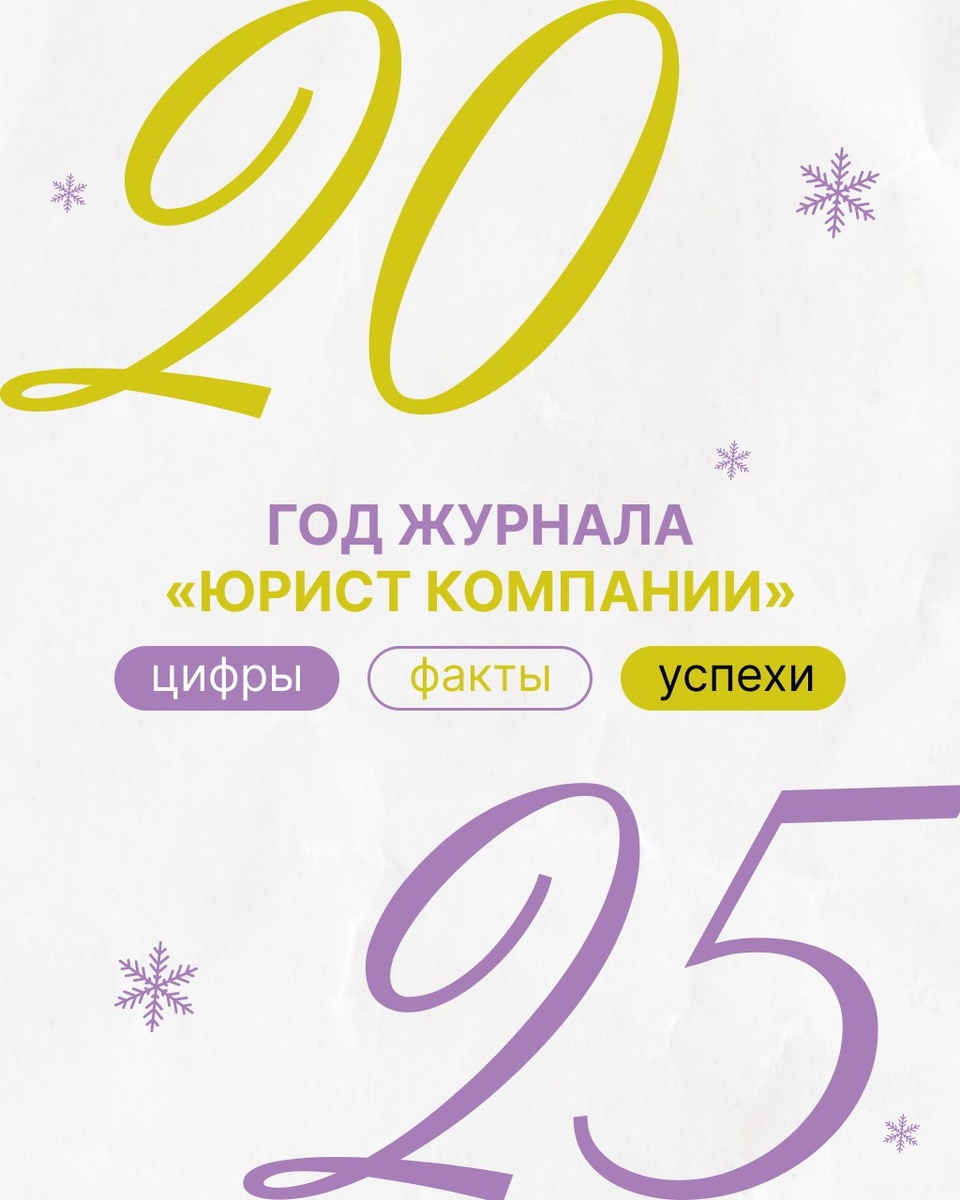 ➡️ В 2025 году для журнала практикующие юристы и эксперты написали 396 статей. Выбирали только актуальные темы, с которыми юристы компаний сталкиваются в работе каждый день. Редакция разбирала сложное, отсекала лишнее и оставляла главное — то, что помогает быстрее разобраться в ситуации и принять решение без лишних рисков. Все цифры смотрите в карточках. В новом году желаем вам спокойных задач, больше определённости и как можно меньше сюрпризов со стороны регуляторов и судов. А мы будем рядом, чтобы поддерживать вас в ежедневной юридической работе, рассказывать о важных событиях и изменениях в правовой сфере ❤️ 🟣 Подписаться на канал «Юрист компании»