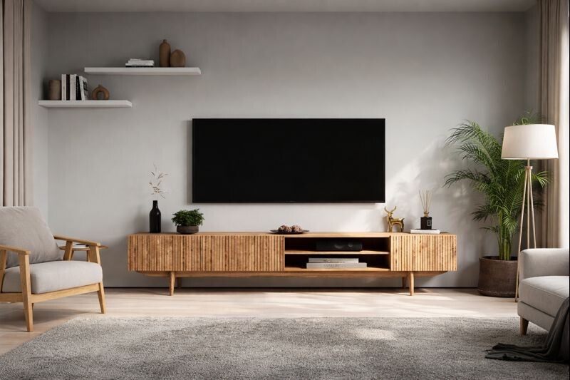 Когда телевизор большой, а тумба — нет: как решить проблему хранения и пропорций в гостиной
