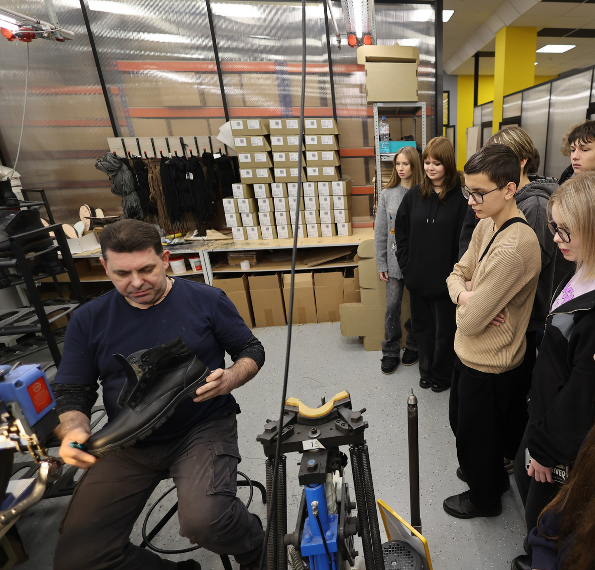 Профессиональная проба по затяжке обуви прошла в кластере легкой промышленности Санкт-Петербургского государственного университета промышленных технологий и дизайна в рамках федерального проекта «Профессионалитет» для школьников Петербурга. Для ребят, находящихся в поиске себя и своего места в жизни, это возможность увидеть, как ремесло переплетается с роботизацией, как сегодня на современном оборудовании работают технологи, цифровые модельеры, конструкторы сумок и обуви, дизайнеры, понять изнутри новый формат производственной культуры, расспросить студентов, которые не поднимая головы и не отрываясь от чертежей и машинных строчек, отвечают, что это не просто учеба, а, скорее, подготовка «космонавтов» для обувной и кожгалантерейной отрасли. Школьники поверхностно познали новую профессию, ушли с горящими глазами, а значит мы примем их в ряды студентов #Профессионалитета и будем готовить новое поколение #ПРОМТЕХДИЗАЙН. Мероприятие посетили 53 школьника.