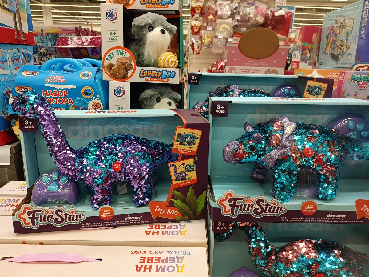 На этой неделе я в очередной раз убедилась, что слишком ранняя подготовка к празднику не имеет смысла. Отмытую до блеска ванную дети уже опять успели заляпать, наведенный порядок в шкафах снова вернулся к своему исходному бардачному состоянию, а бюджет на детские подарки превысился в два раза. Ну невозможно, заходя в магазины перед новым годом, не взять что-то ещё. Хотя в общем-то детское было куплено аж в ноябре. Вот, например, зашла в Ашан, а там такая прелесть! Блестящее, динозавровое, ещё и по акции, ну как не взять.